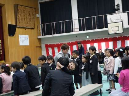 新1年生たち,いきなり広い体育館に連れてこられて,事情がよく分からない。