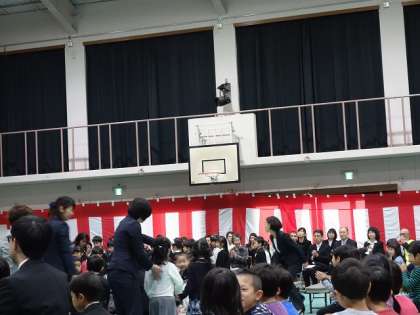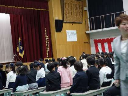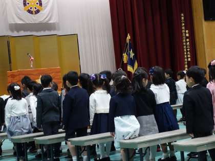 「起立」の声と共に,1年生達もピョコンと立ち上がります。可愛いですね。