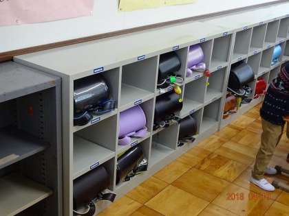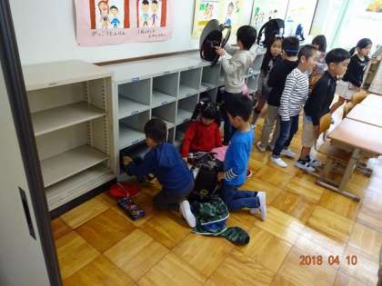 学校に来たら,ランドセルの中のものを机にしまって,ランドセルはロッカーの中にしまいます。