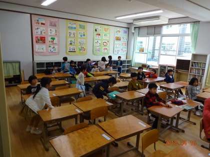 とにかく,1年生は何かあったら,すぐに床や地面にペタンと座り込んで作業をするようです。