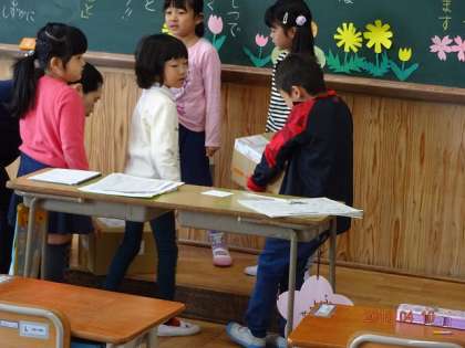 教科書や,教材を運んでいるようです。昨年まで1年生だったのに,1年経つとこんなことができるんですね。結構重い荷物ですよ。