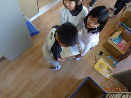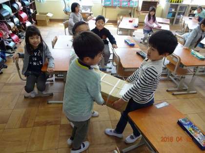 2時間目に校内を回っていると,2年生達がエッチラオッチラと段ボールを運んでいます。
