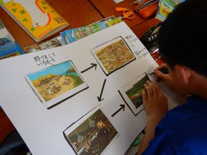 歴史好きな子も多いようで,色んな知識を持っている子もちらほら…聞きなれない言葉もたくさんあり興味深々の授業始めでした。写真を見比べ,人の様子や景色に注目をして,年代順に班で話し合いをして並べ替えました。現代と過去を見比べ,気付いたことをたくさん見つけていました。これからの歴史学習が楽しみですね!