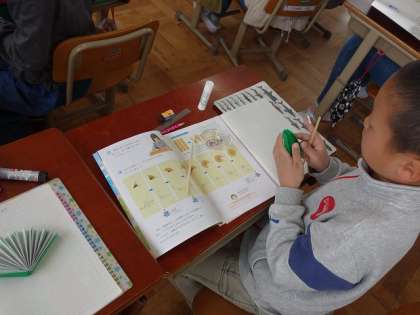 こちらは,折り紙を折っている・・・と思ったら,算数のお勉強。