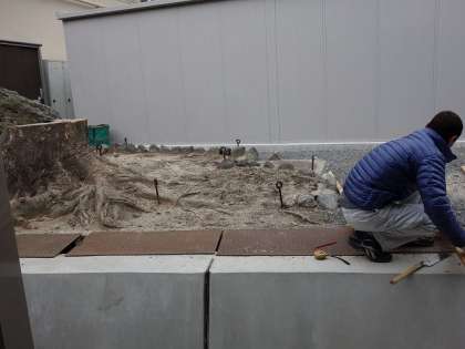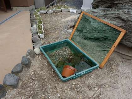 管理用務員のTさんが,金魚やメダカを入れる池を作ってくれました。