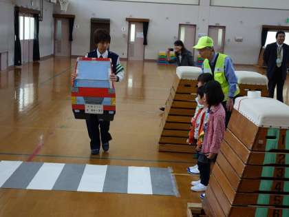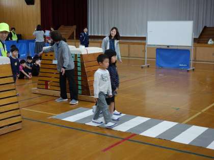 子どもたち,すごく緊張していましたが,お話をしっかり聞いて,安全な道の歩き方を体験することができました。