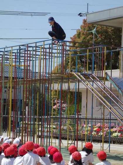 先生が,スルスルと登るたびに,やんややんやの拍手喝采が子どもたちから沸き起こります。
