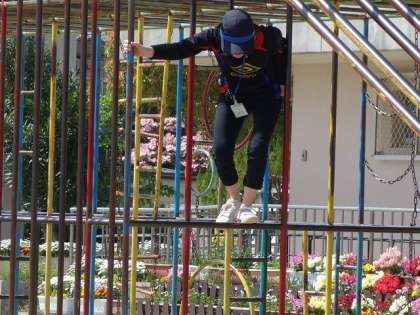 というのは,間違いで,総合遊具の遊び方の指導中。