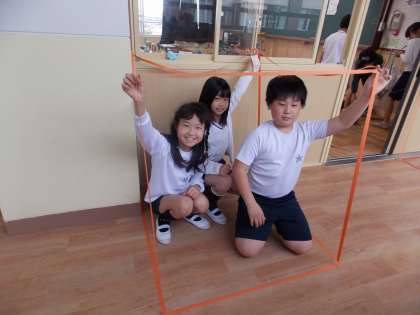 思ったよりも大きい!と班のみんなで1立方メートルの中に入りました。