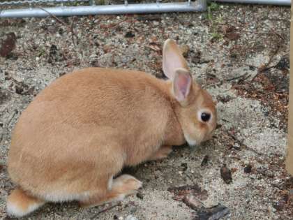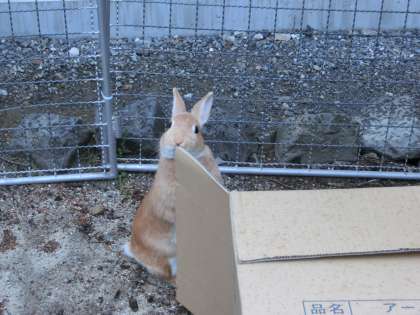 学校の人気者,ウサギさんたちとふれあいができそうな広場を作りました。