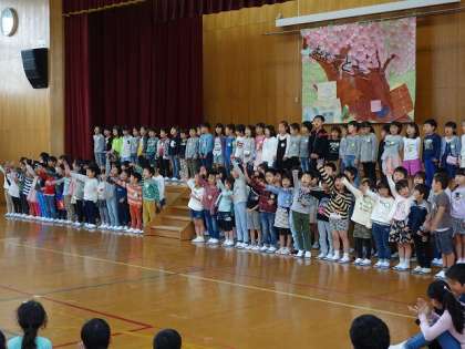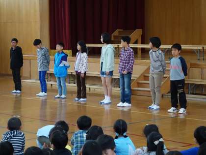 上級生たち,孫をみるような優しい目で,1年生を見つめています。