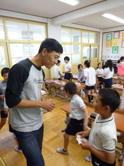 3年生から始まった英語の授業では,先日ALTの先生も来てくださいました。