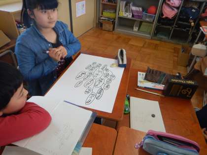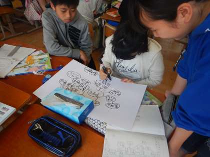 国語科「平和のとりでを築く」の学習の中でイメージマップで考えを広めています。平和とは何か…自分たちの未来はどんな未来であるべきか…学習を進めていきます。