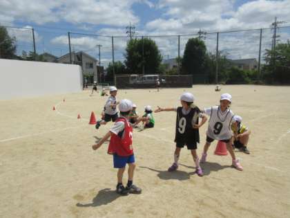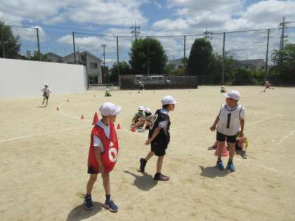 子どもたちの様子を見ていると,チームごとに合図を決めてバトンパスをするなど,たくさんの工夫をしながら取り組んでいました。