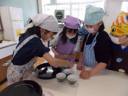 急須や茶卓などを使って,お茶の入れ方を実践しました。