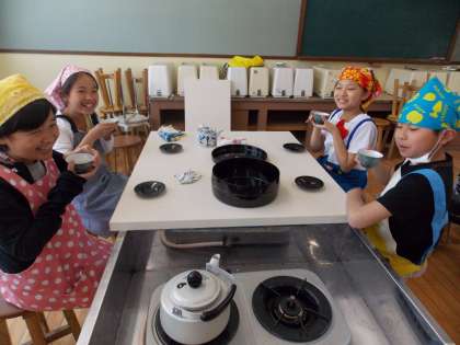 家庭科室に何があるのかということから始まり,コンロの使い方も学習した5年生は,
