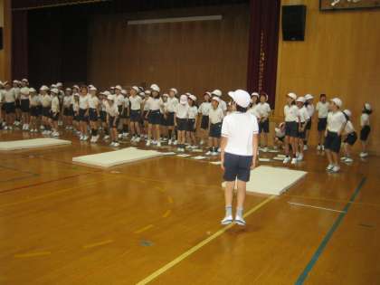 学年合同で,体育館で体力テストをしました。
