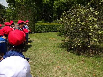 子どもたちが植物園で見ているのは,ブラシソウ。