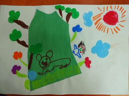 見えた形は山。可愛い動物と一緒に