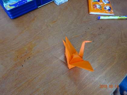 6年生に教えてもらって折り鶴ができました。
