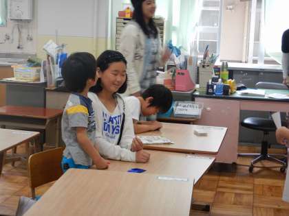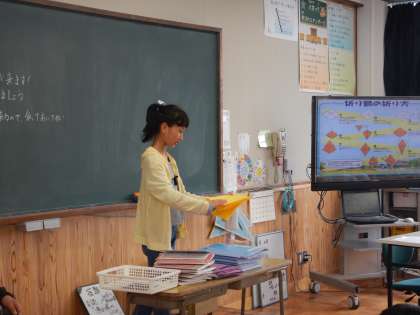 修学旅行を再来週に控えた6年生…総合や国語の学習で学んだことを各クラスに分かれ全校に伝えました。平和への願いを込めて…折り鶴をおりました。丁寧にやさしく教えています。