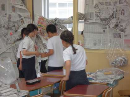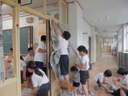 教室のドアも窓も,こどもたちにとって身近な材料のようです。