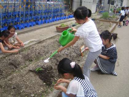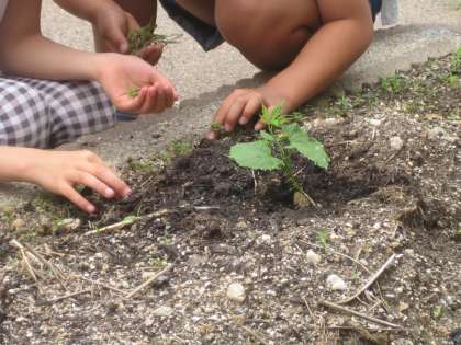4年生の畑には,昨年のこぼれ種が芽を出しています。