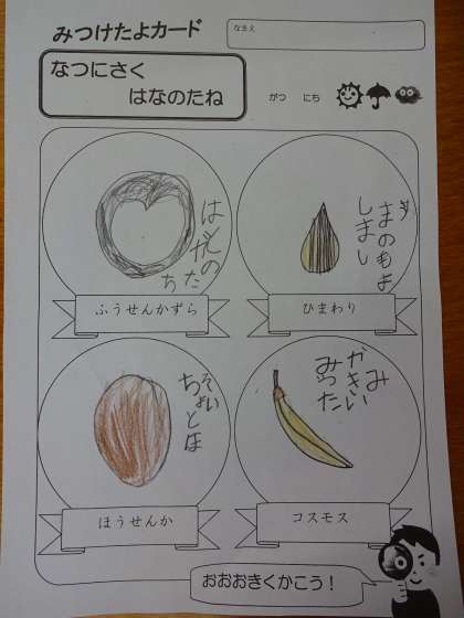 1年 夏に咲く花の種を観察したよ