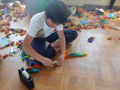 制作チームの人数がぞくぞく集まり,全校の思いをつないでいます。