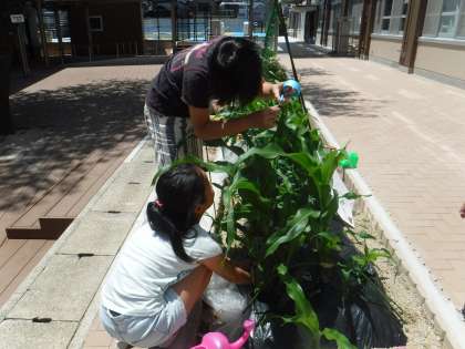 そらいろの畑のとうもろこしは,どんどん大きくなっています!紙テープではかり定規でどれくらいかを調べました。