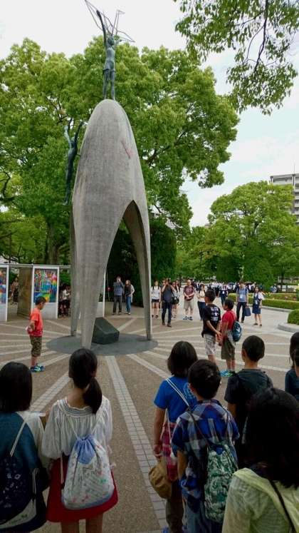 「原爆の子の像」の前で,折り鶴の歌を歌いました!
