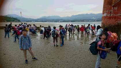 めったに見れない大鳥居の根元を観察中…何かついてるなぁ…
