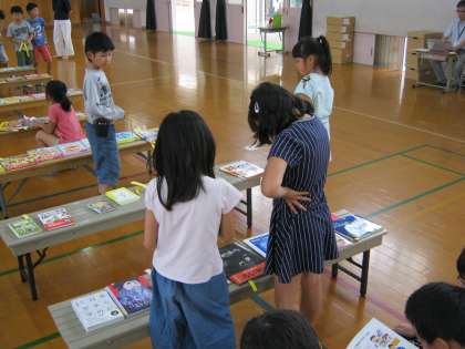 子どもたちは真剣に本を選んでいます。