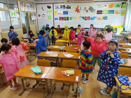 生活科「雨を楽しもう」の学習で,外に出て雨を楽しみました!