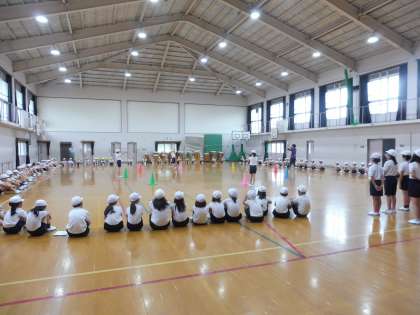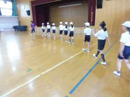 グループごとに1列に並んで入場します。営火場をイメージしながら大きな円になり,キャンプファイヤーのリハーサルをしました。