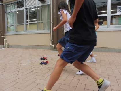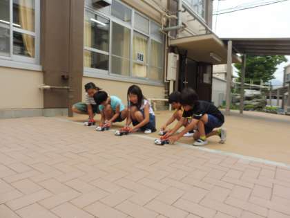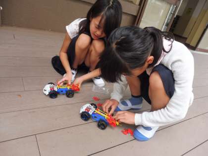 電池を2つ直列でつないで,車のスピードを速くしたり,電池の向きを逆にしてバックさせたり,今までの学習を生かして,車を走らせることができていました。