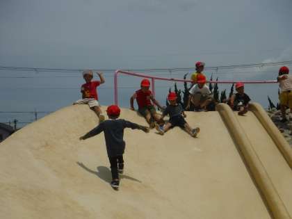 交流クラスの1年1組さんと生活科の学習でお皿公園に行きました。G先生が「おーい!Hく〜ん!一緒に夏を見つけよう!」と声をかけていただきました。