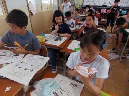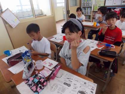 歯の磨き方を確認して,ピカピカにしていました。