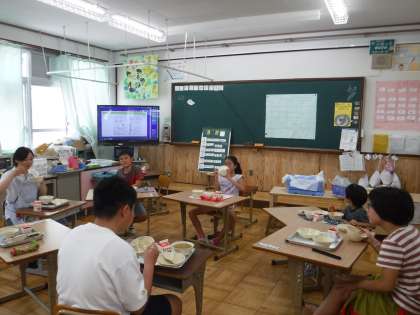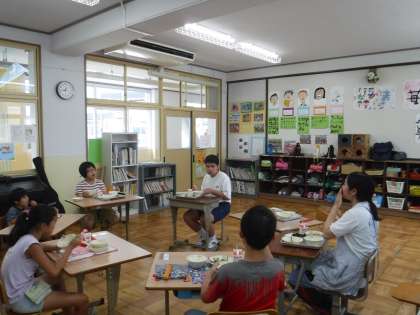 今日から西賀茂中学の2年生が来てくれました。先輩が来てくれたのでそらいろの子どもたちも大喜びでした。一緒に保健室や給食室に挨拶に行きました。給食は栄養教諭のM先生も一緒に食べました。