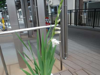 グラジオラスが咲いていました!スーッとキリッときれいです!園芸委員会の5・6年生いつもお世話ありがとう!