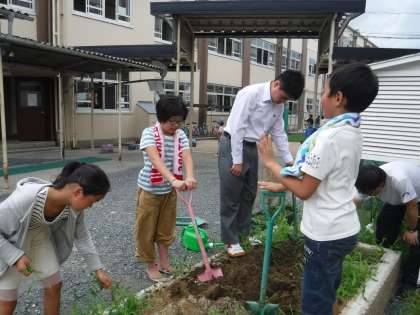 西賀茂中学校の2年生のお兄さんが仕事に来てくれています。今日は,そらいろの畑を耕す作業を一緒にしました。さすがです!黙々と働いてくれました。
