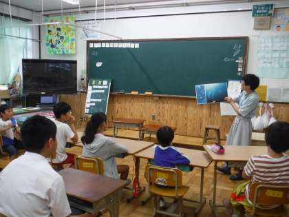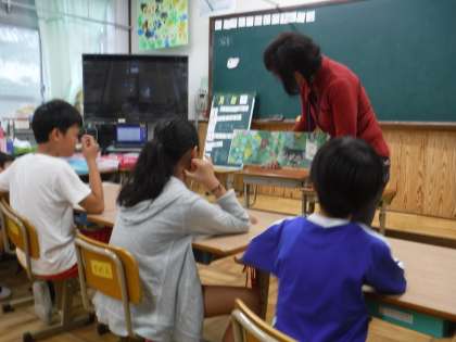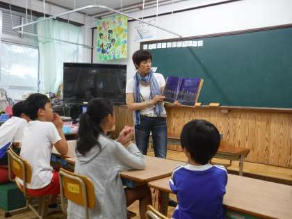 大雨の中,地域のPTAサークル おはなしの会 もこもこさんが来てくださいました。毎月,季節のお話を持ってきて読んでくださいます。