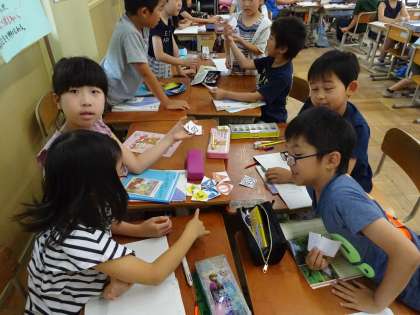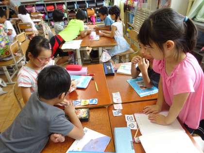 国語科「気になる記号」では,記号のはたらきについて調べました。記号の形だけでなく,色にも意味があることを知って驚いていました。
