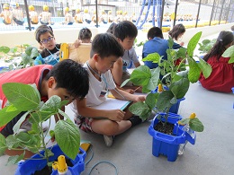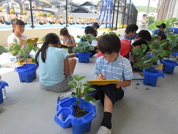 総合的な学習の時間で育てている大豆が,とても大きく育ちました。