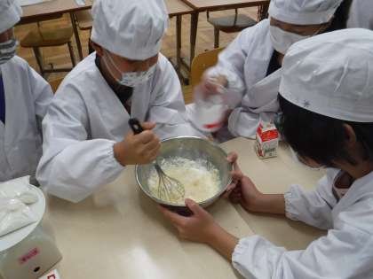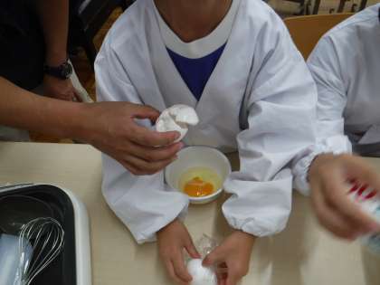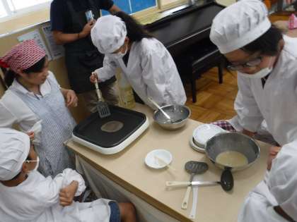 今日は,7月の誕生日会のパート2!をしました。クレープを作りました!みんなで役割分担をして作りました。栄養教諭のM先生も一緒です!