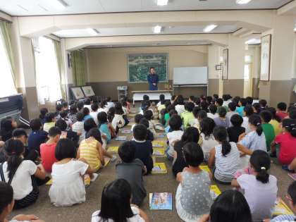火災がない時,消防署ではどんな活動や仕事をしているのか,北消防署から消防士さんに来ていただき,お話を聞きました。日々の訓練の話やどんな活動や仕事をしているか教えていただきました。