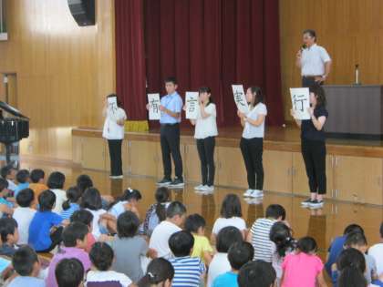 校長先生の話が始まると,ビシッと聞く姿勢を取っています。