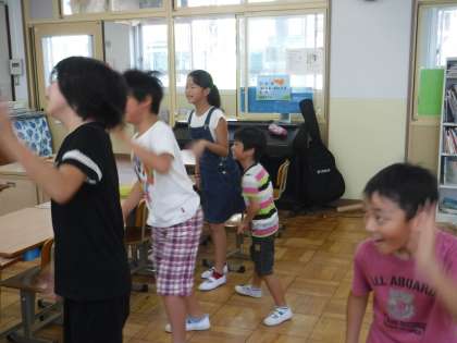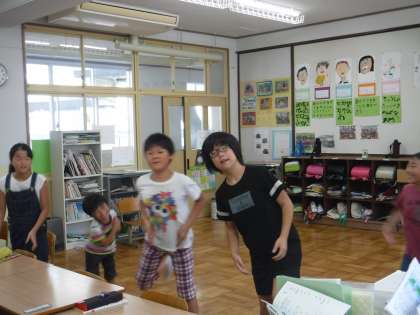 今年のそらいろの演技は,最初に「マスカット」ゆずの曲でダンス!教室で練習しています。みんなノリノリです!