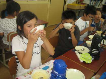 牛乳もなかった給食時間は,お茶がみるみうちにる無くなりました。