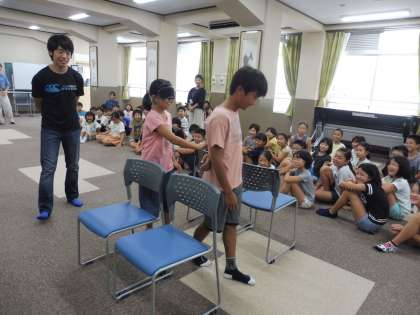 実際に,街で視覚に障害のある方に出会ったら…と想定し,アイマスクをして手引きの体験もしました。